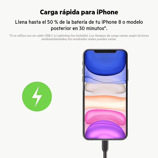 Cargador 20W para auto con cable Lightning Belkin negro