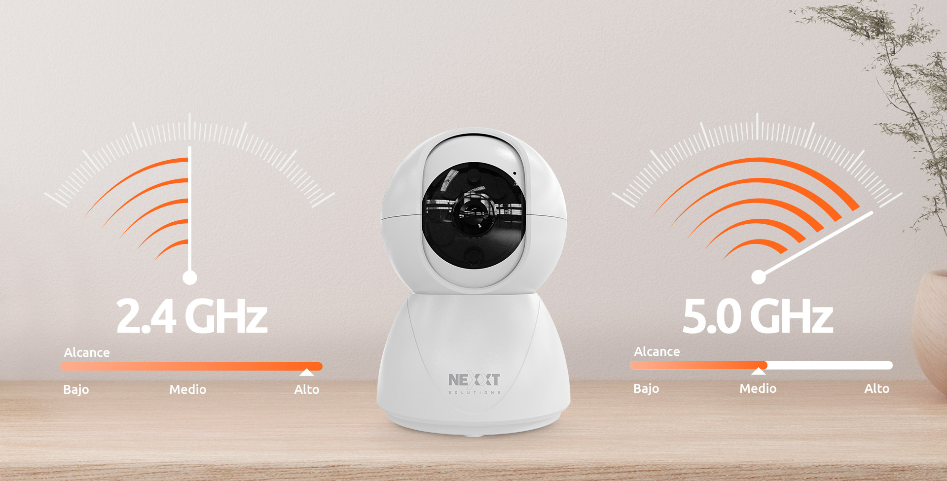 Conexión Wi-Fi de doble bandaElige la conexión que mejor se adapte a tu forma de usar la cámara. 2.4 Ghz para un mayor alcance o 5Ghz para velocidades de transmisión más rápidas con menos retrasos e interferencias