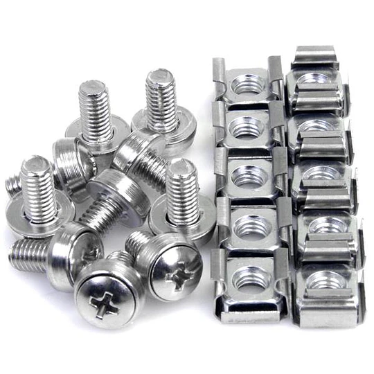 Este paquete de 50 tornillos de montaje y tuercas enjauladas M6 para racks y armarios de servidores resulta práctico a la hora de instalar equipos de servidores, redes, dispositivos audiovisuales y demás equipo para montaje en rack, de forma segura en su armario o rack de servidores.