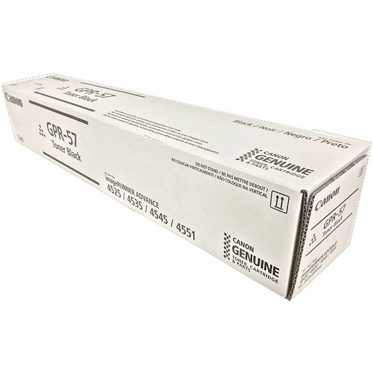 El cartucho de tóner Canon GPR-57 viene en un práctico empaque de caja, lo que garantiza su protección durante el transporte y almacenamiento. No pierdas la oportunidad de obtener impresiones de alta calidad y duraderas con este cartucho de tóner original de Canon.