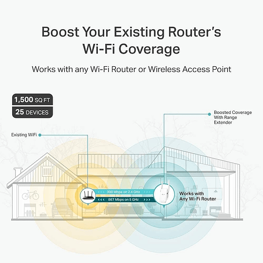 Extensor de rango Wi-Fi - 100Mb LAN - Wi-Fi 5 - 2.4 GHz, 5 GHz - en pared